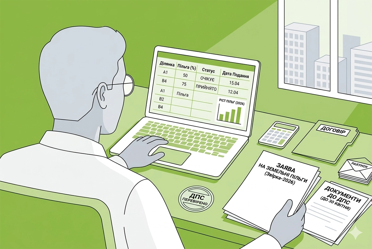 Згідно з п. 281.5 ПКУ якщо право на пільгу у фізичної особи, яка має у власності декілька земельних ділянок одного виду використання, виникає протягом календарного року та/або фізична особа, визначена у п. 281.1 ПКУ, набуває право власності на земельну ділянку / земельні ділянки одного виду використання, така особа подає заяву про застосування пільги до контролюючого органу за місцем знаходження будь-якої земельної ділянки протягом 30 календарних днів з дня набуття такого права на пільгу та/або права власності.