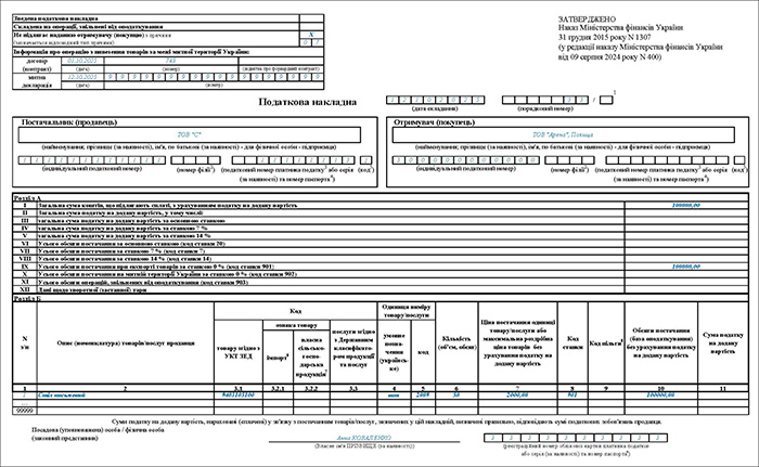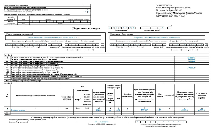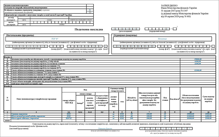 Наголосимо ще раз, форма (обов’язкові реквізити) та порядок заповнення податкової накладної є загальними для всіх. Однак для різних випадків податкова накладна складається по-різному.